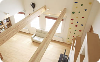 吹き抜けの高い天井高を利用してクライミングウォールも整えました。